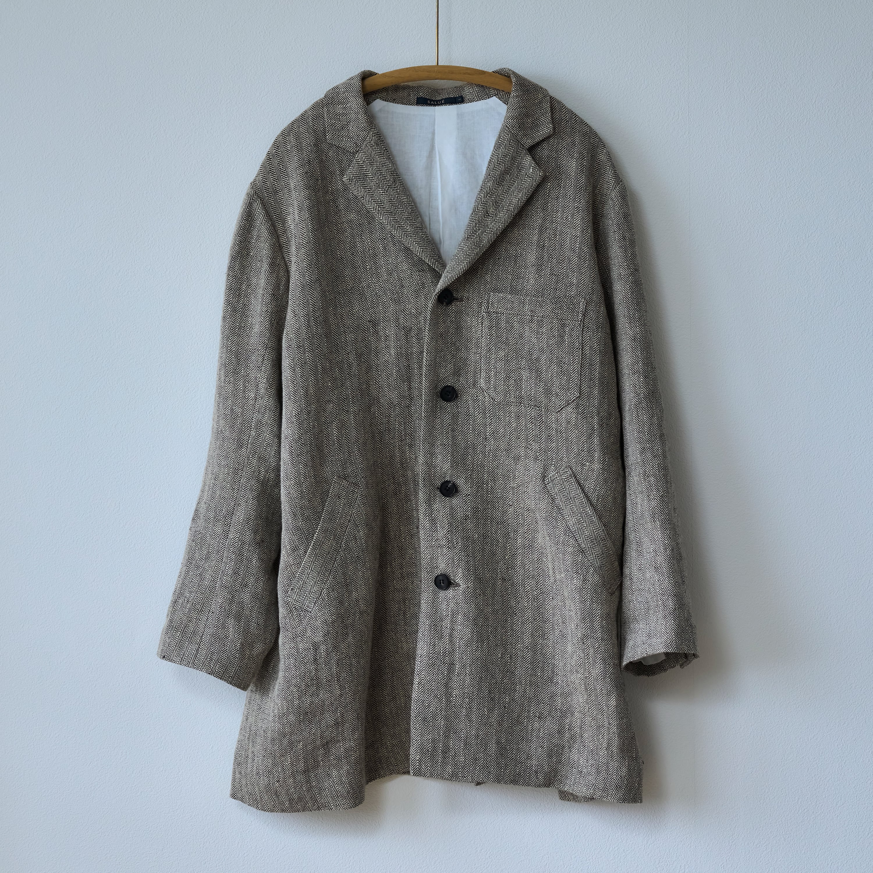 リトアニア産のヘリンボーンリネンを使用したコートジャケット。