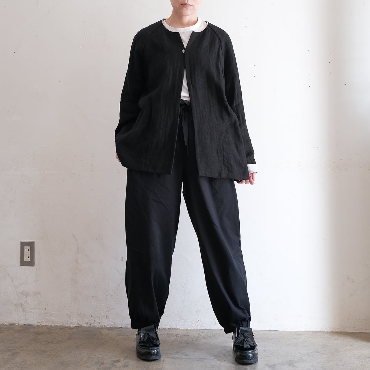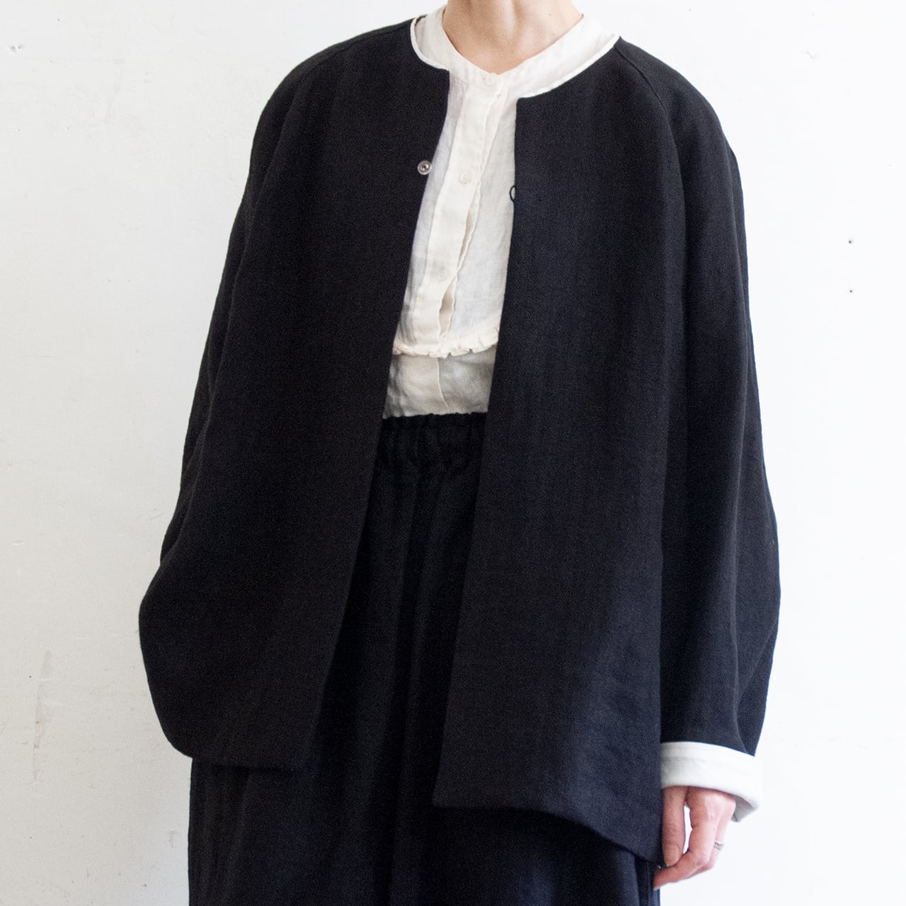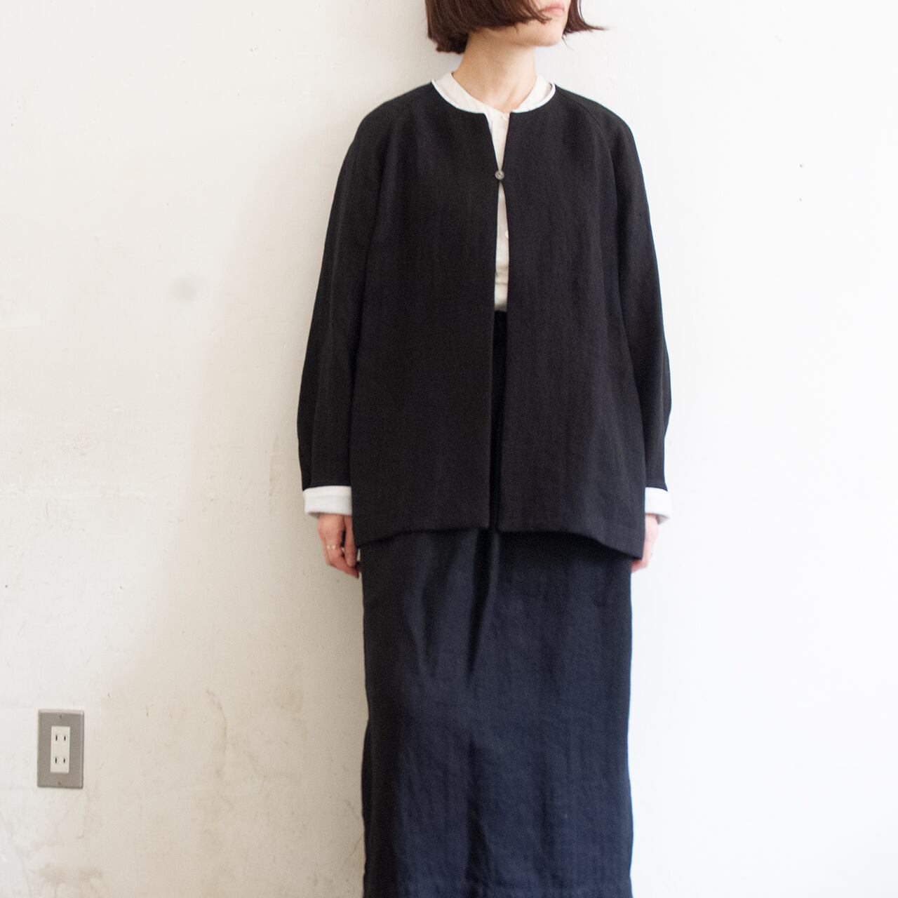 unisex no collar jacket/herringbone linen 〈black〉size 1