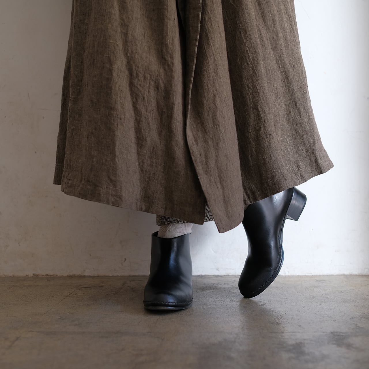 大きめのパッチポケットは、どなたでも似合う位置にこだわりました。バックの深めのベンツは、足さばきを楽にするだけでなく、軽やかに揺れ動くリネンを美しく見せます。