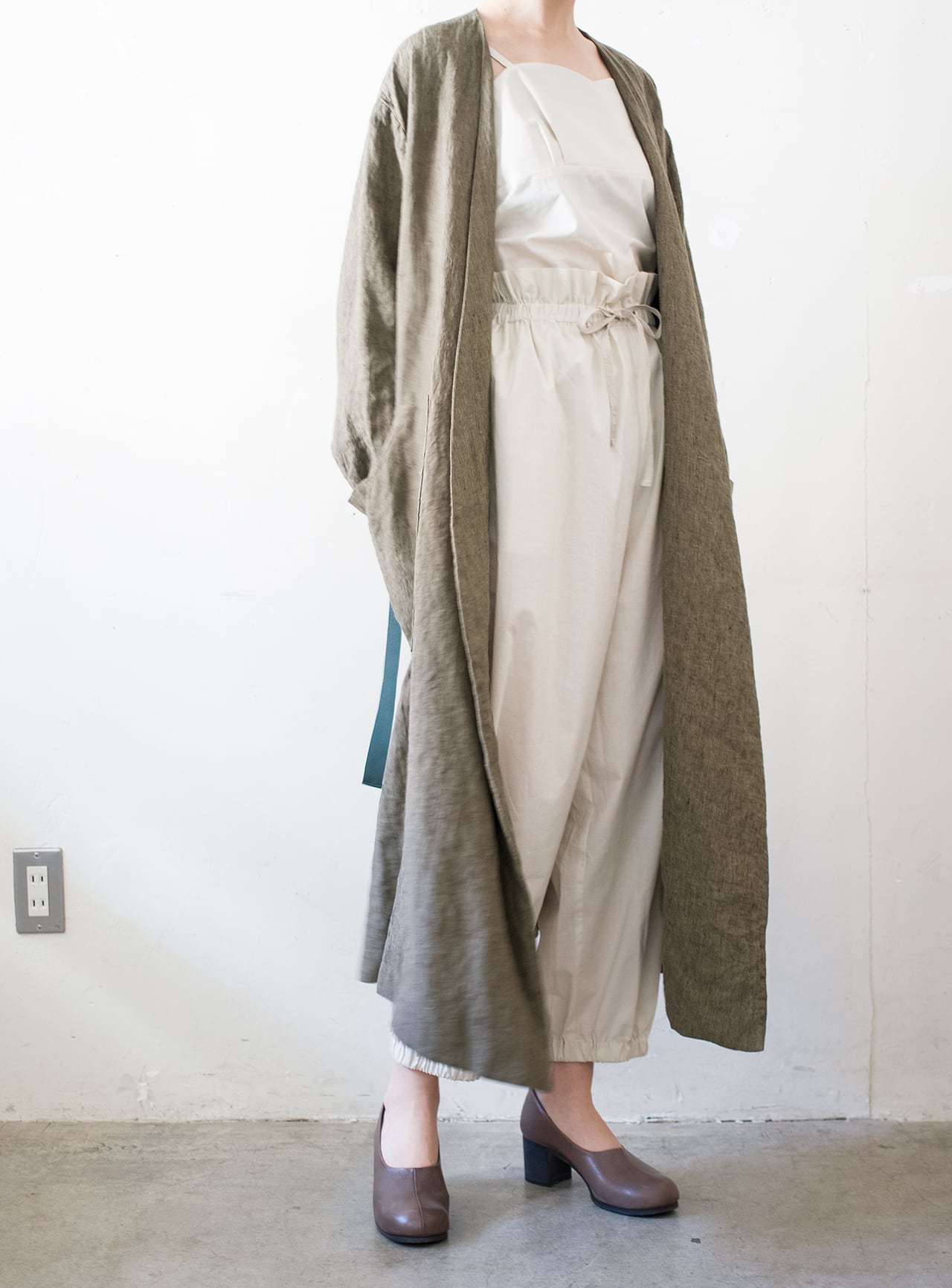 cache-coeur coat/mid weight linen〈khaki×gray〉