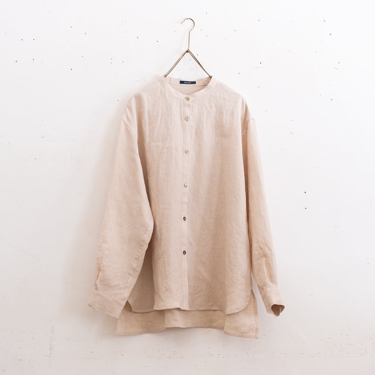 unisex band collar shirt/mid weight linen〈skin beige〉