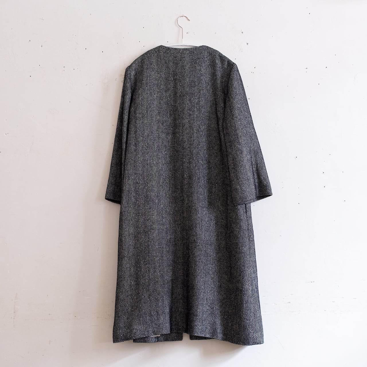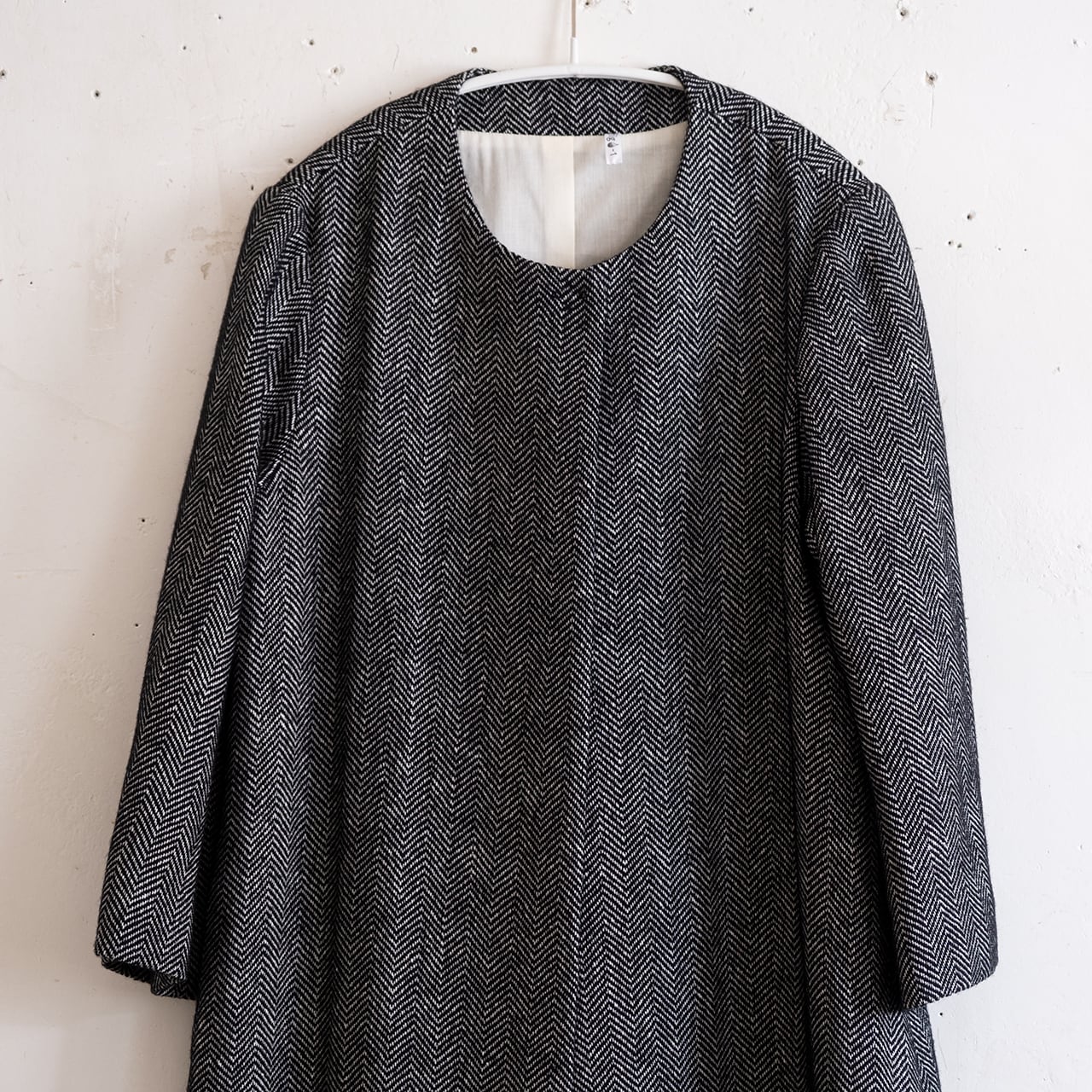no collar coat/herringbone wool linen 〈black×ivory〉