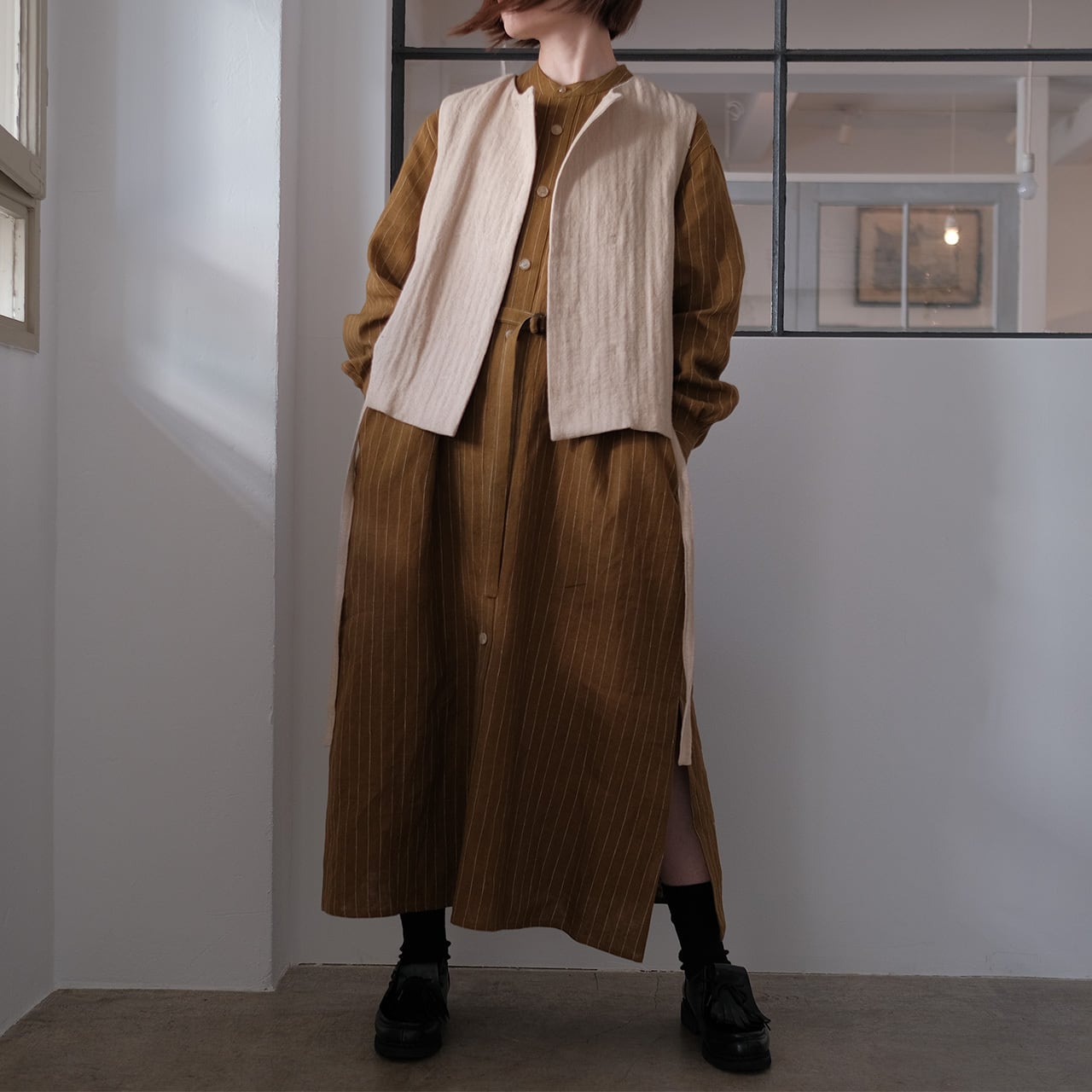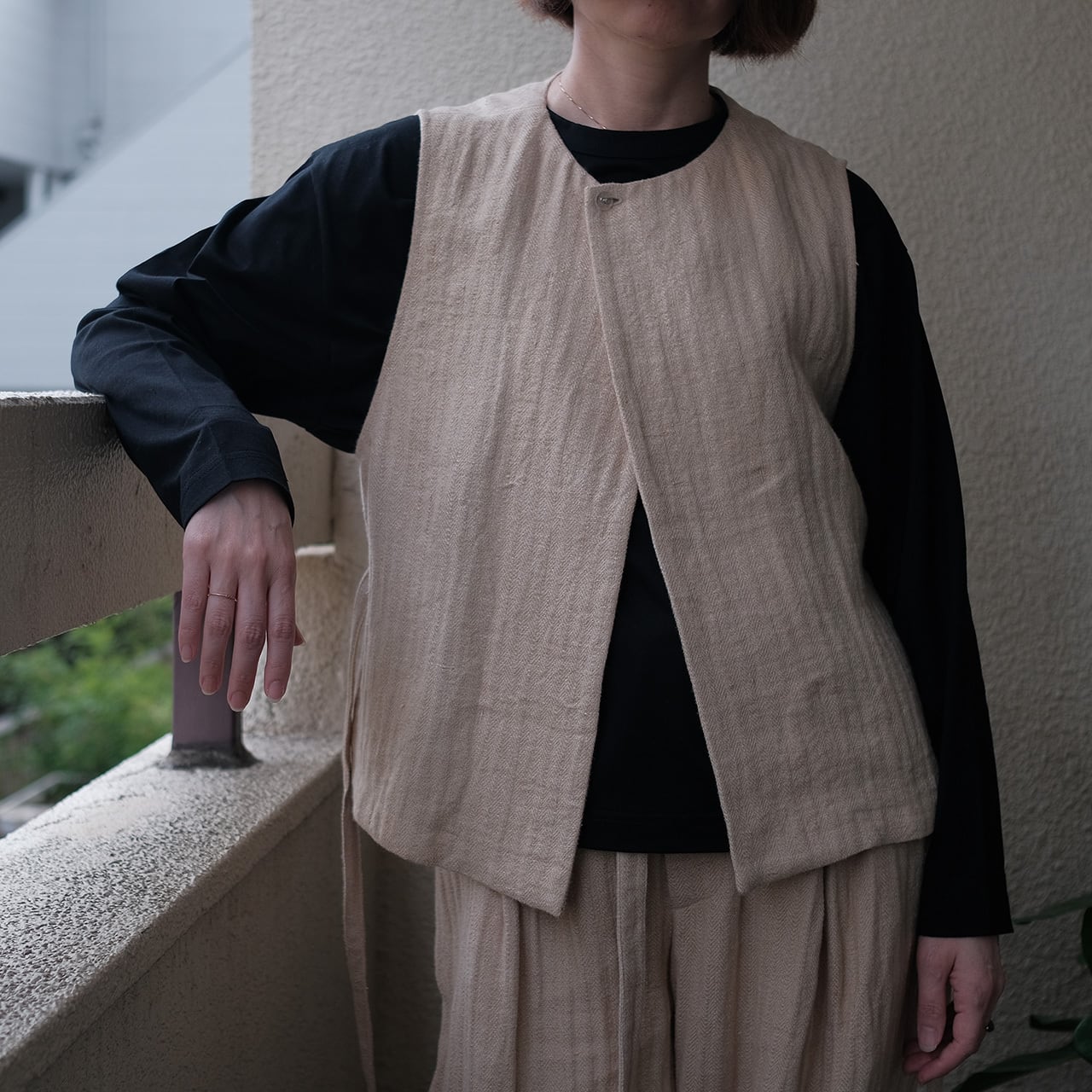 model:high-waisted gilet/herringbone linen