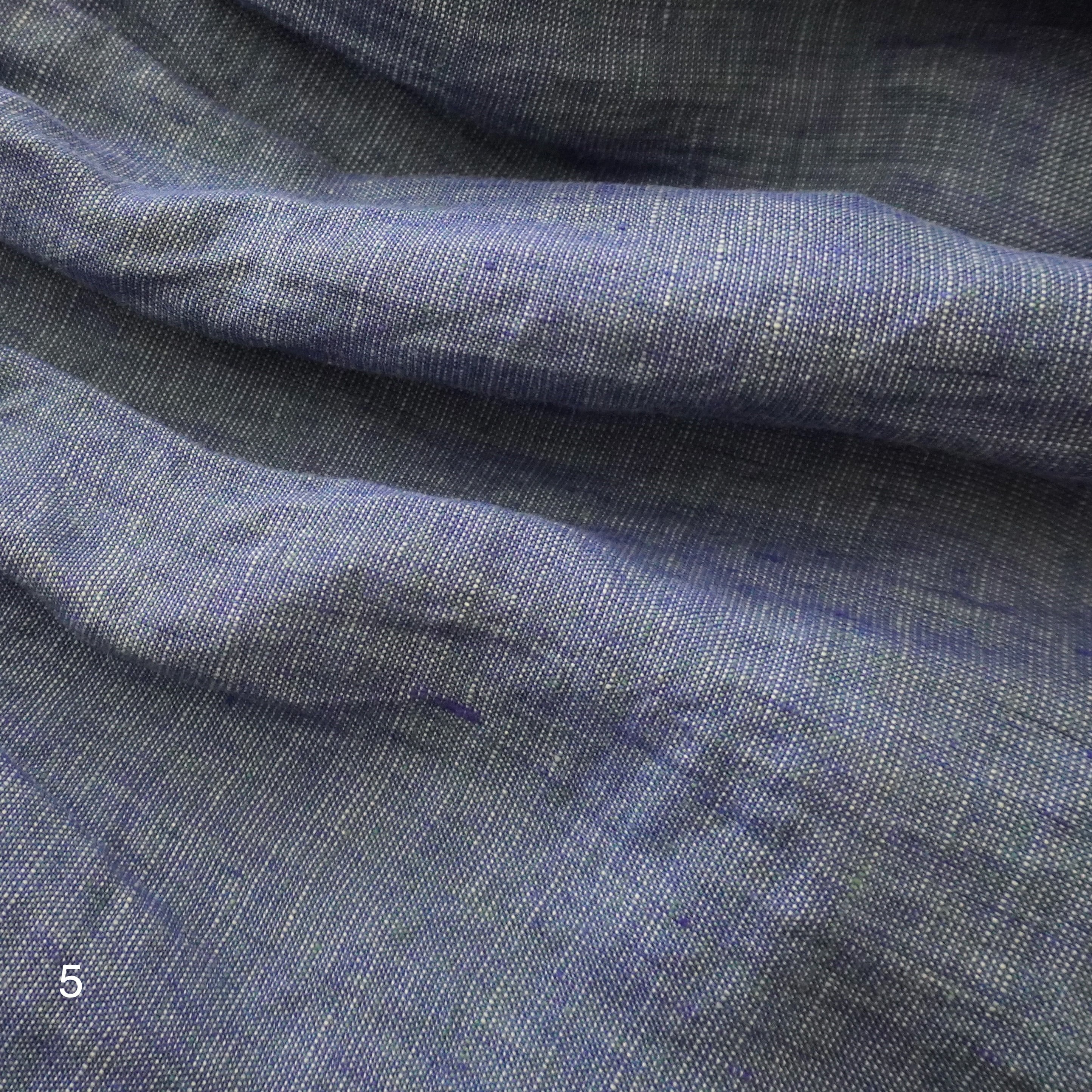グリーン、ブラック、ブルーの3色のメランジェ生地です。ダークグリーンに、ブルーが見え隠れしている奥行きある色味が楽しめます。SALUÉオリジナルのライトウェイトリネンよりも少しだけしっかりした厚みの薄生地です。